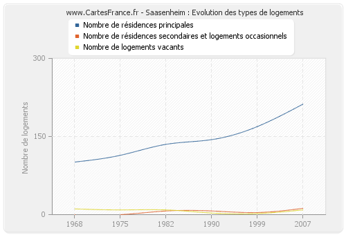 - Nombre de résidences principales de Saasenheim en 2007 : 212