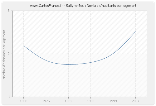 - Nombre d'habitants moyen par logement de Sailly-le-Sec en 1982 : 1,75