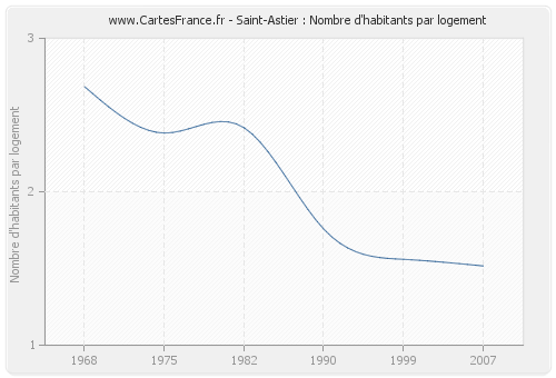 - Nombre d'habitants moyen par logement de Saint-Astier en 2007 : 1,52