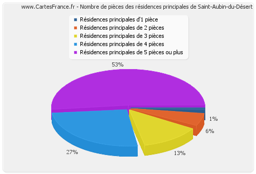 - Nombre de résidences principales de Saint-Aubin-du-Désert de cinq pièces et plus : 56