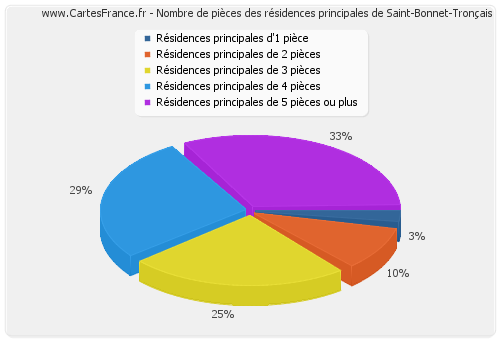 Nombre de pièces des résidences principales de Saint-Bonnet-Tronçais en 2007 :