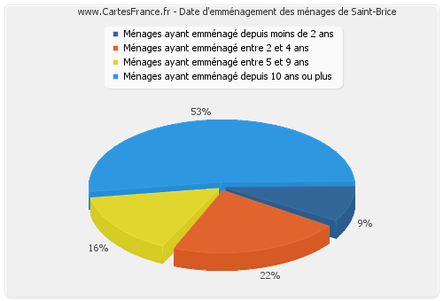 - Nombre de ménages de Saint-Brice ayant emménagé depuis 10 ans ou plus : 104