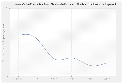 - Nombre d'habitants moyen par logement de Saint-Christol-de-Rodières en 2007 : 1,38