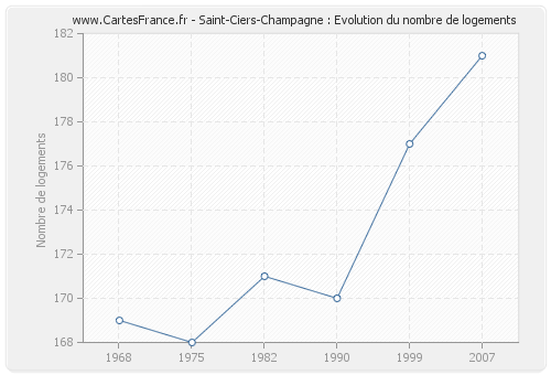 Historique du nombre de logements de Saint-Ciers-Champagne de 1968 à 2007 :