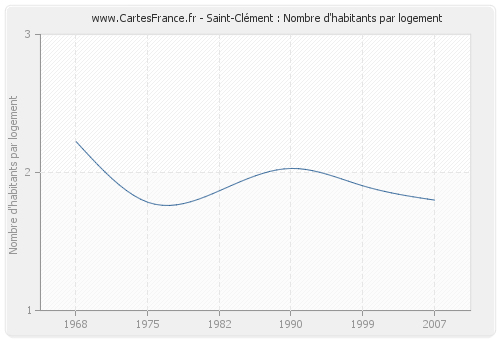 - Nombre d'habitants moyen par logement de Saint-Clément en 2007 : 1,80
