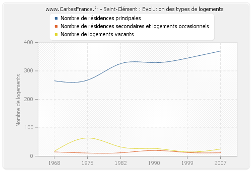 - Nombre de résidences principales de Saint-Clément en 2007 : 370