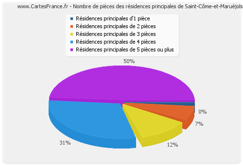 Nombre de pièces des résidences principales de Saint-Côme-et-Maruéjols en 2007 :