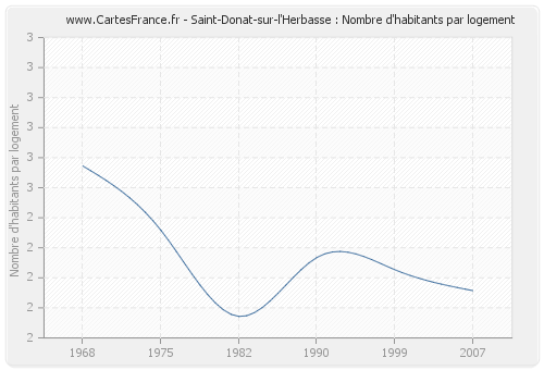 - Nombre d'habitants moyen par logement de Saint-Donat-sur-l'Herbasse en 1968 : 2,57