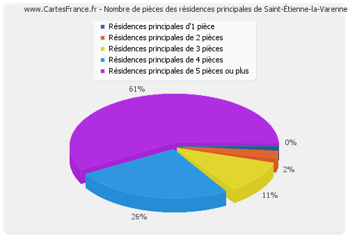 - Nombre de résidences principales de Saint-Étienne-la-Varenne de quatre pièces : 65