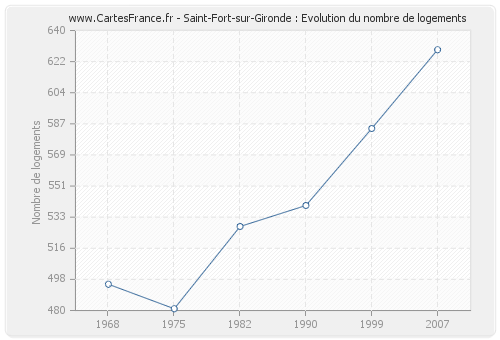 Historique du nombre de logements de Saint-Fort-sur-Gironde de 1968 à 2007 :