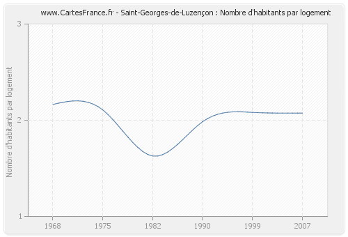 - Nombre d'habitants moyen par logement de Saint-Georges-de-Luzençon en 2007 : 2,07