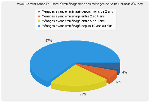 - Nombre de ménages de Saint-Germain-d'Aunay ayant emménagé depuis moins de 2 ans : 3
