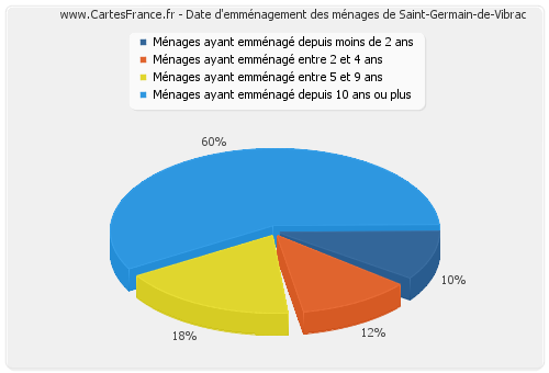 - Nombre de ménages de Saint-Germain-de-Vibrac ayant emménagé depuis 10 ans ou plus : 46
