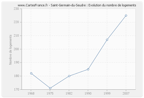 Le nombre de logements de Saint-Germain-du-Seudre était de 225 en 2007, 207 en 1999, 185 en 1990, 180 en 1982, 171 en 1975 et 182 en 1968.