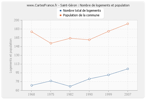Historique du nombre de logements de Saint-Géron de 1968 à 2007 :