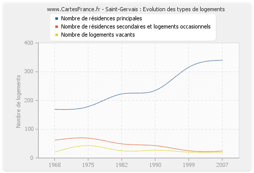 - Nombre de résidences principales de Saint-Gervais en 2007 : 340
