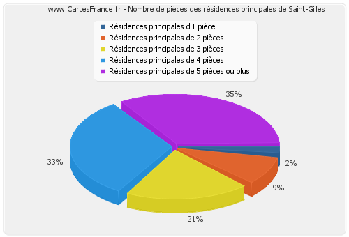 Nombre de pièces des résidences principales de Saint-Gilles en 2007 :