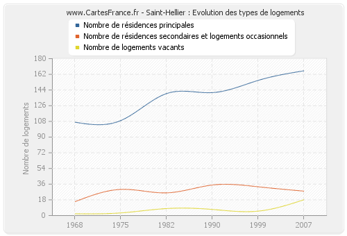 - Nombre de résidences principales de Saint-Hellier en 2007 : 166