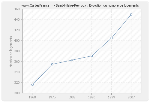 Historique du nombre de logements de Saint-Hilaire-Peyroux de 1968 à 2007 :