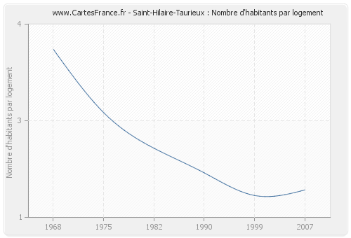 - Nombre d'habitants moyen par logement de Saint-Hilaire-Taurieux en 2007 : 1,43