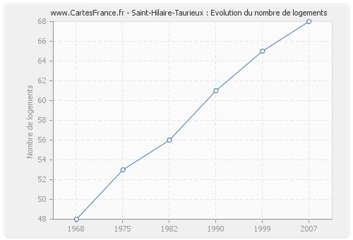 Historique du nombre de logements de Saint-Hilaire-Taurieux de 1968 à 2007 :