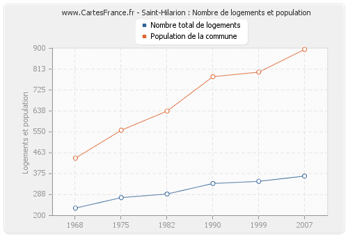 La population de Saint-Hilarion était de 895 habitants en 2007, 800 habitants en 1999, 781 habitants en 1990, 637 habitants en 1982, 557 habitants en 1975 et 440 habitants en 1968. Parallèlement, le nombre de logements de Saint-Hilarion était de 365 en 2007, 343 en 1999, 334 en 1990, 290 en 1982, 275 en 1975 et 231 en 1968.