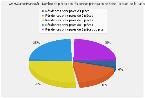 La Ville de Saint-Jacques-de-la-Lande recensait la même année un total de 4 474 ménages. Les graphiques suivants présentent les statistiques d'habitation de ces ménages de Saint-Jacques-de-la-Lande.