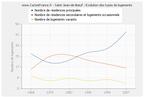 - Nombre de résidences principales de Saint-Jean-de-Bœuf en 2007 : 44