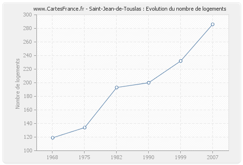 Historique du nombre de logements de Saint-Jean-de-Touslas de 1968 à 2007 :