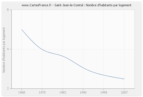 - Nombre d'habitants moyen par logement de Saint-Jean-le-Comtal en 2007 : 2,37