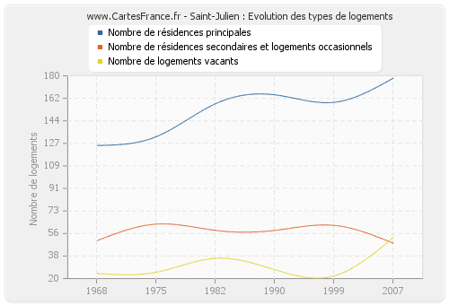 - Nombre de résidences principales de Saint-Julien en 2007 : 178