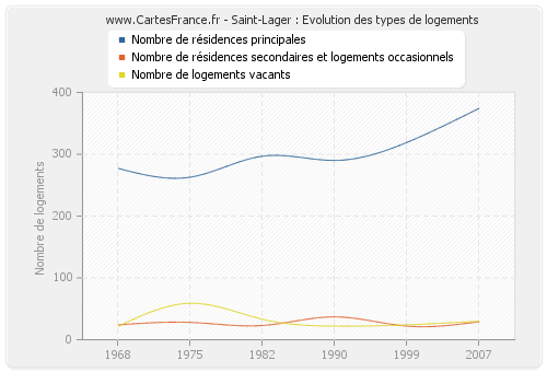 - Nombre de résidences principales de Saint-Lager en 2007 : 374