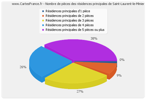 - Nombre de résidences principales de Saint-Laurent-le-Minier de quatre pièces : 45