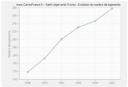 Historique du nombre de logements de Saint-Léger-près-Troyes de 1968 à 2007 :