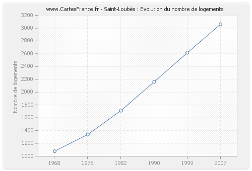 Historique du nombre de logements de Saint-Loubès de 1968 à 2007 :