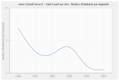 - Nombre d'habitants moyen par logement de Saint-Louet-sur-Vire en 2007 : 2,10