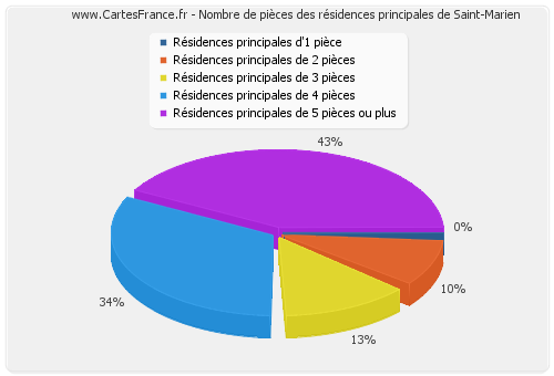 - Nombre de résidences principales de Saint-Marien de cinq pièces et plus : 36