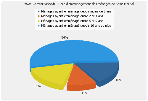 - Nombre de ménages de Saint-Martial ayant emménagé depuis 10 ans ou plus : 43