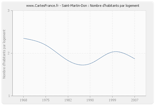 - Nombre d'habitants moyen par logement de Saint-Martin-Don en 2007 : 1,87