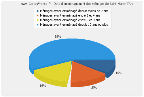 - Nombre de ménages de Saint-Martin-l'Ars ayant emménagé depuis 10 ans ou plus : 114