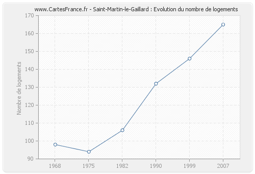 Historique du nombre de logements de Saint-Martin-le-Gaillard de 1968 à 2007 :