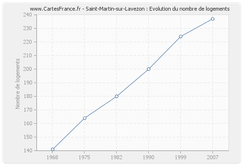 Historique du nombre de logements de Saint-Martin-sur-Lavezon de 1968 à 2007 :