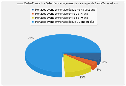 - Nombre de ménages de Saint-Mary-le-Plain ayant emménagé depuis moins de 2 ans : 4