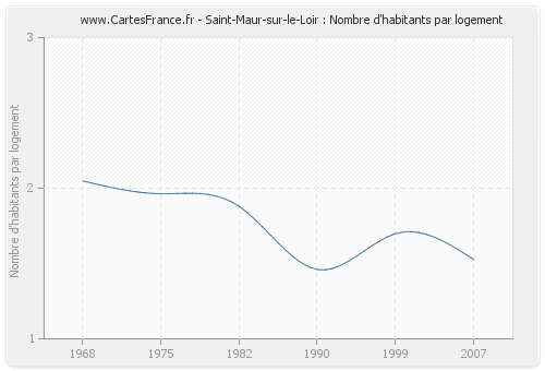 - Nombre d'habitants moyen par logement de Saint-Maur-sur-le-Loir en 2007 : 1,53