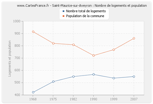 - Population de Saint-Maurice-sur-Aveyron en 2007 : 861 habitants