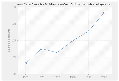 Historique du nombre de logements de Saint-Méloir-des-Bois de 1968 à 2007 :