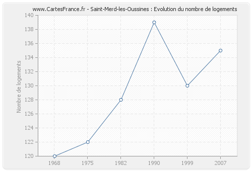 Historique du nombre de logements de Saint-Merd-les-Oussines de 1968 à 2007 :