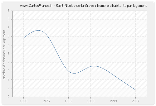 La Ville de Saint-Nicolas-de-la-Grave avait en 2007 une moyenne de 2,08 habitants par logement.