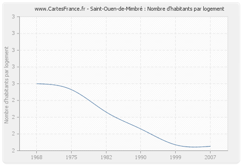 - Nombre d'habitants moyen par logement de Saint-Ouen-de-Mimbré en 2007 : 2,13