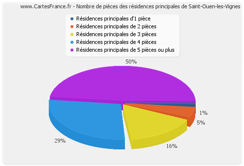 Nombre de pièces des résidences principales de Saint-Ouen-les-Vignes en 2007 :